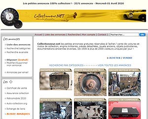 Collectionneur.Net ![]() Petites annonces gratuites de véhicules anciens. (autos, motos, engins militaires et agricoles, pièces détachées et divers automobilia. >> Visiter le site |